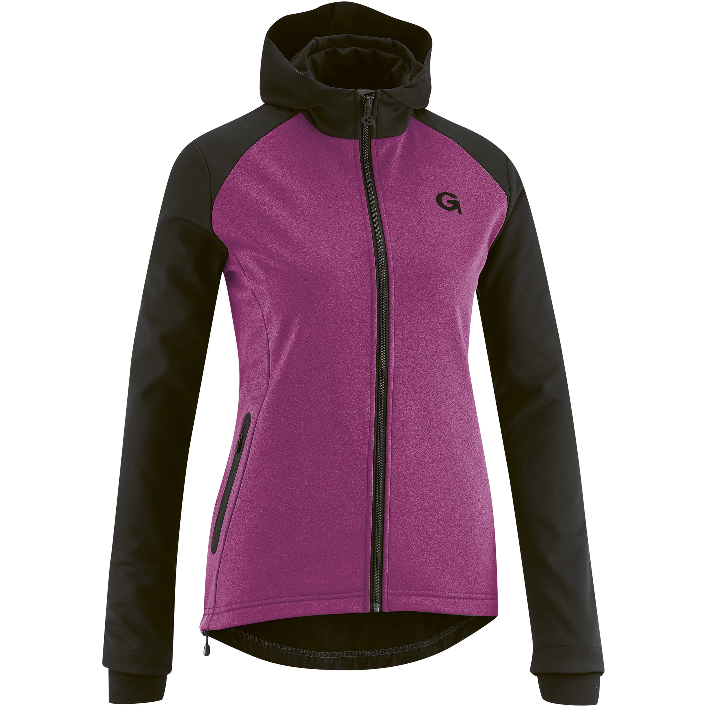 Versatile softshell jacket with hood – thanks to windproof, water-repellent properties you cycle even in uncertain weather conditions.