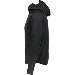 Weatherproof softshell jacket made from stretch material and a good fit for runs on wet and cold days.