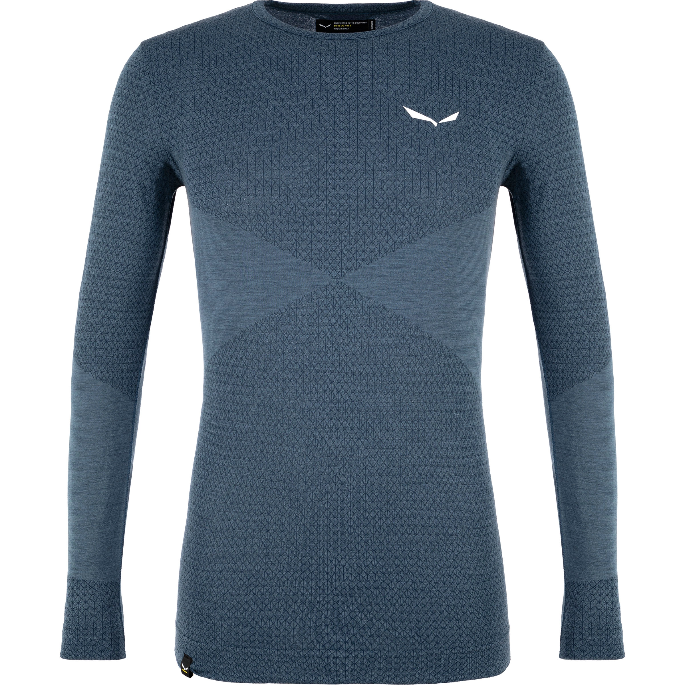 Stretchy long sleeve with merino wool, soft round neckline and abrasion-free flat seams for men